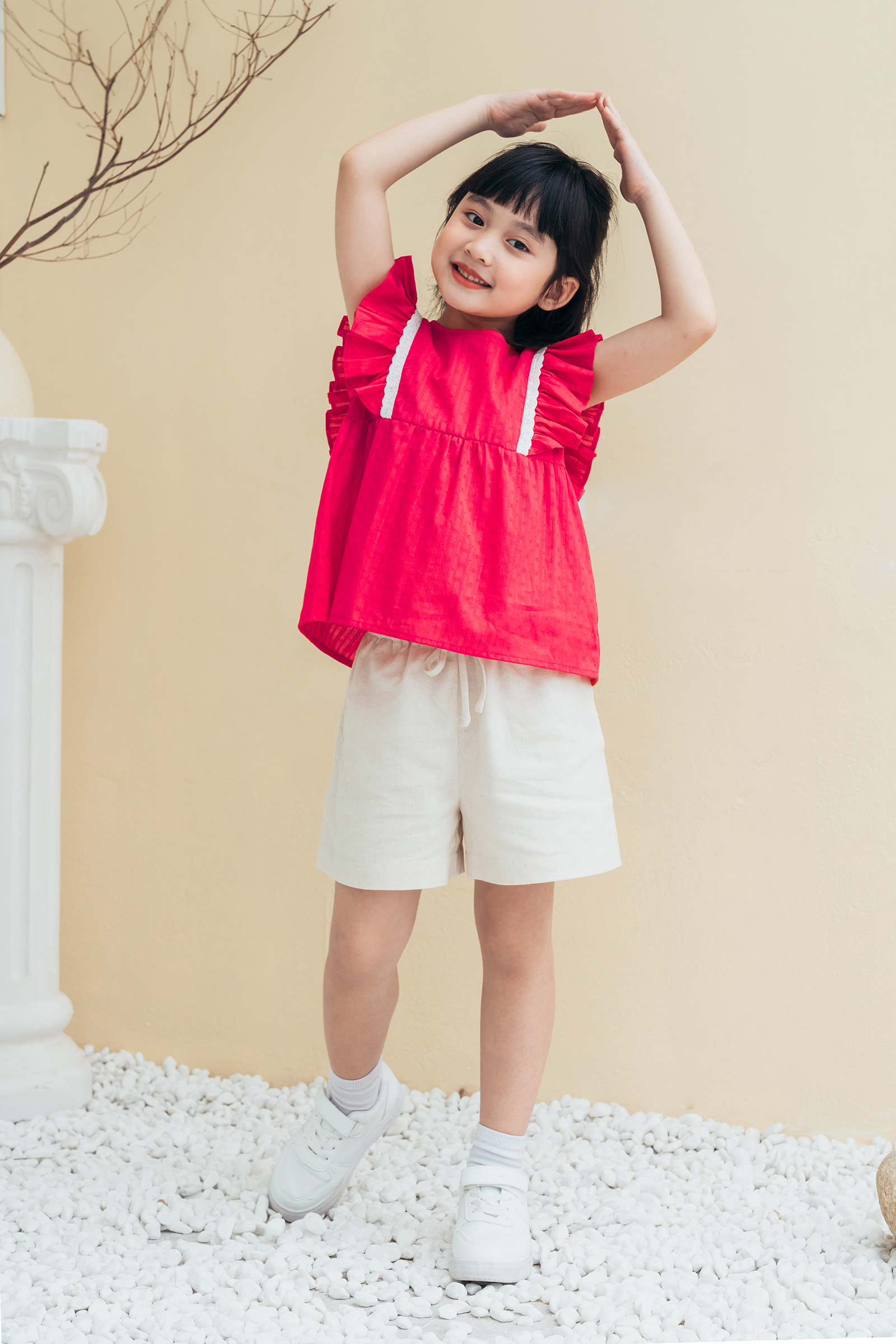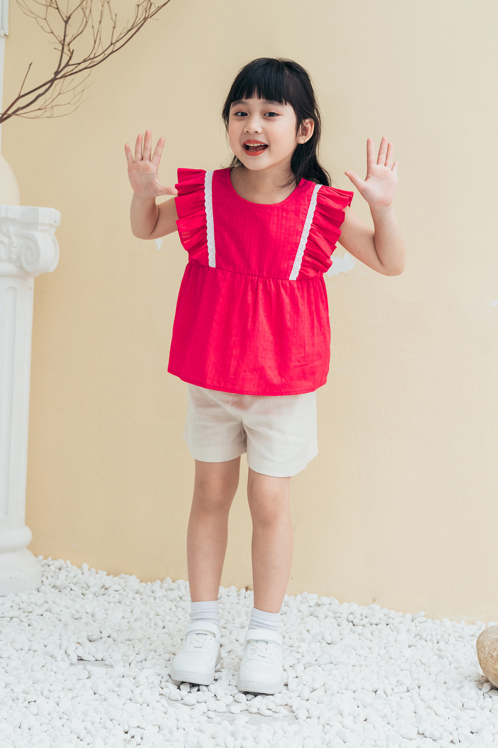 Áo bé gái sát nách hồng tay bèo - KAS2203