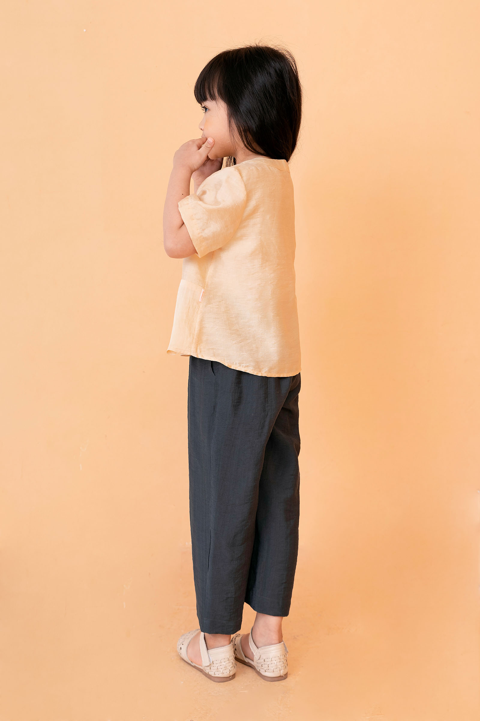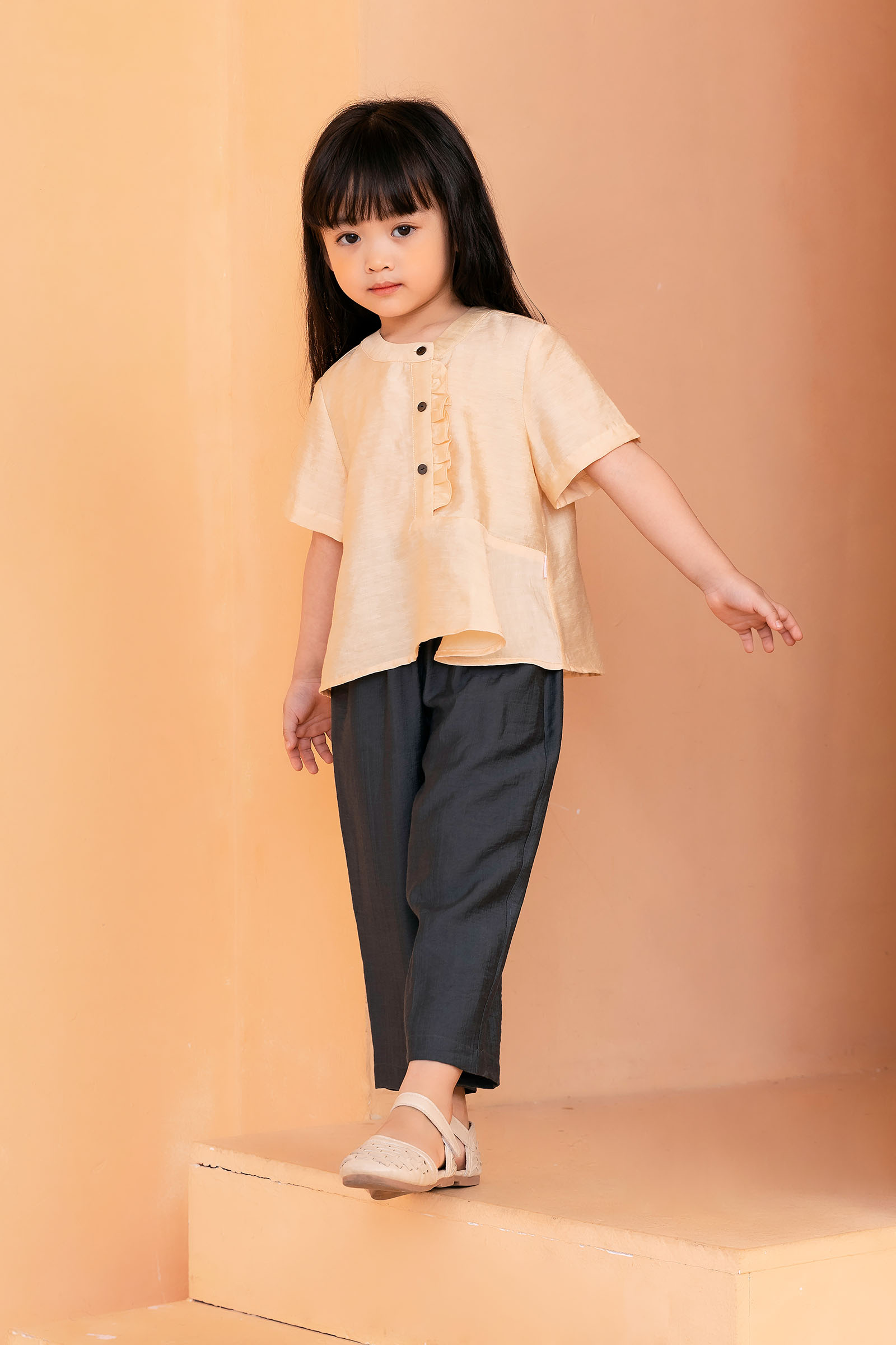 Áo ngắn tay bé gái be phối khuy - KAN1205