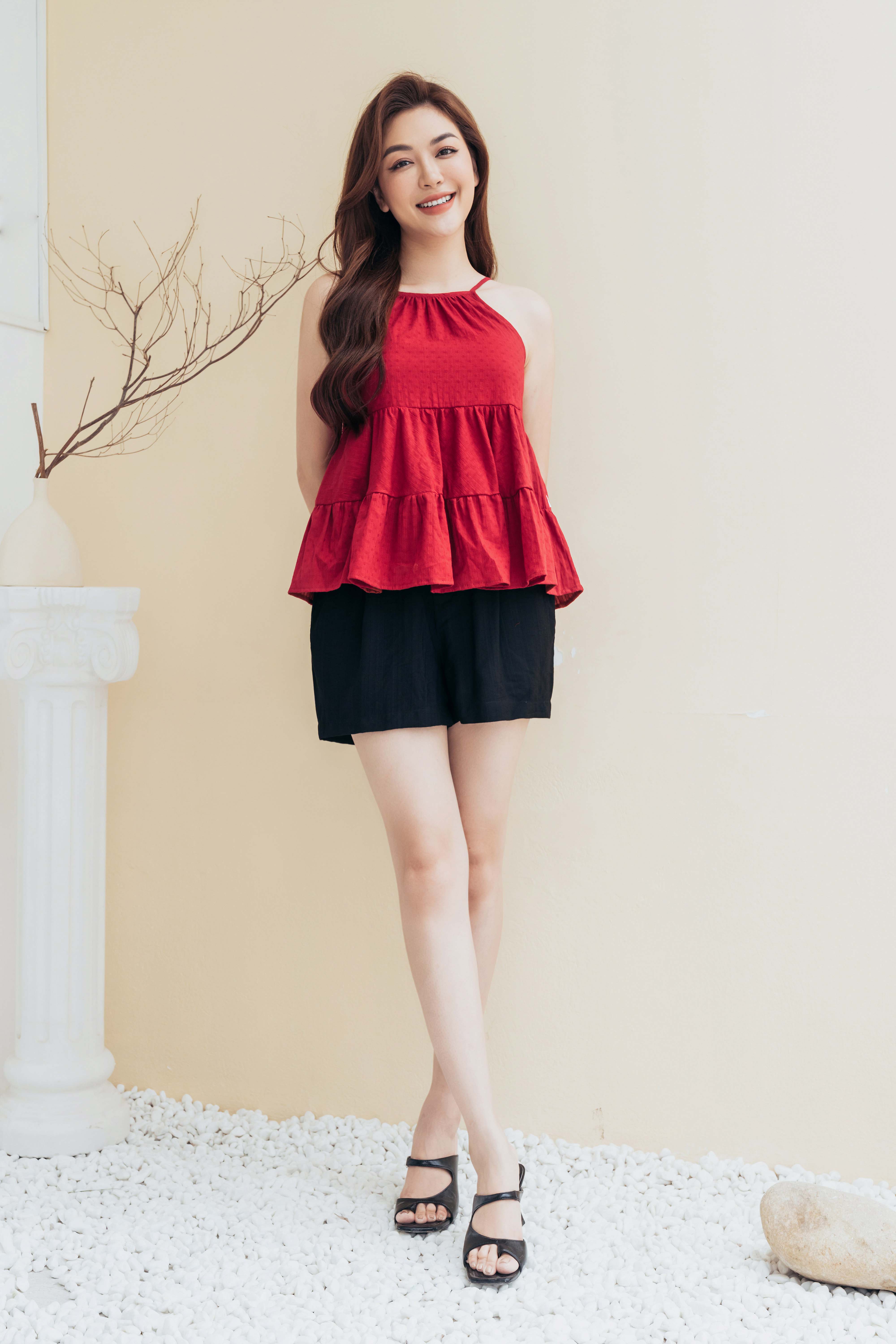 Đồ bộ nữ 2 dây mặc nhà Freedy yếm đỏ tôn da ôm dáng WBH2233