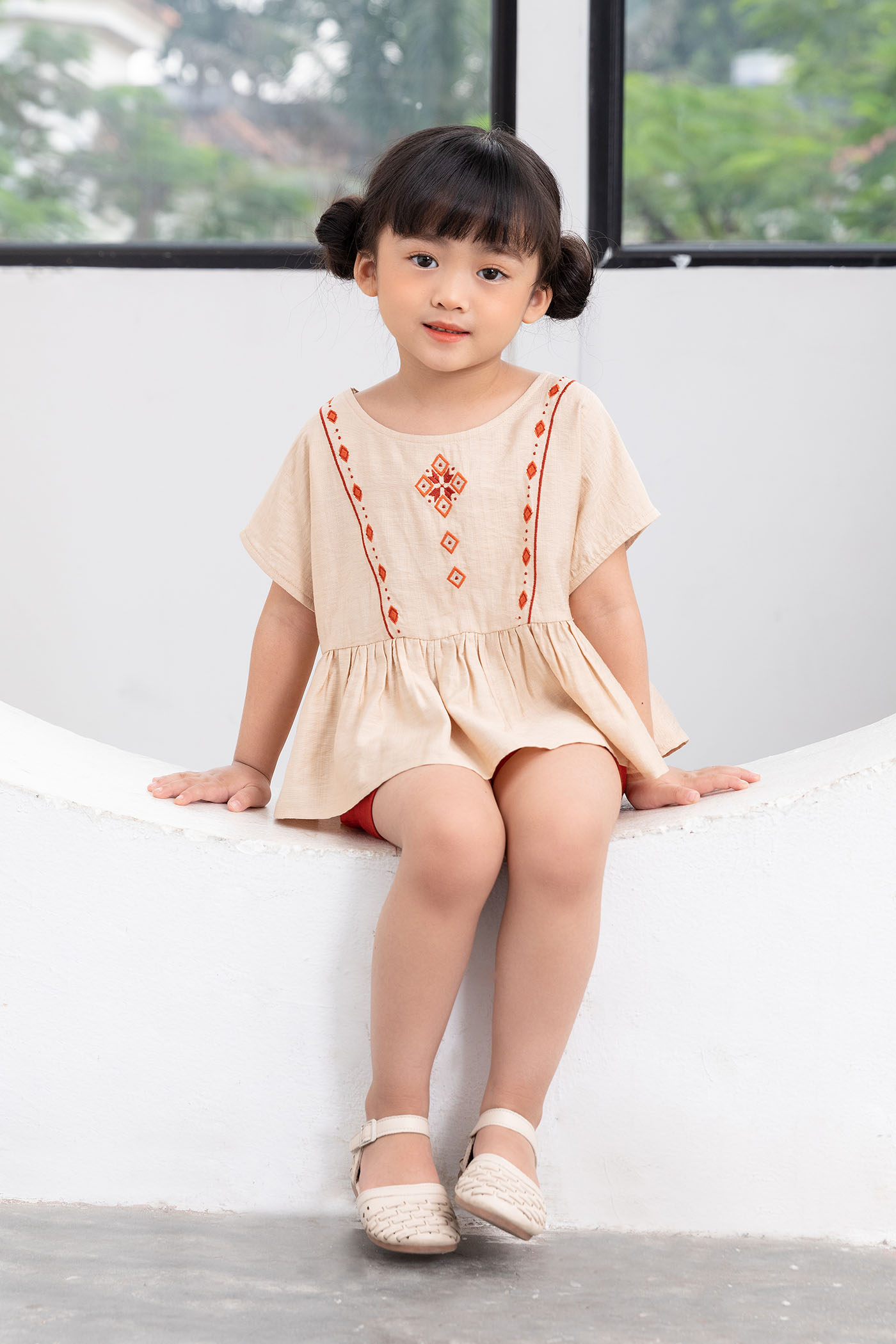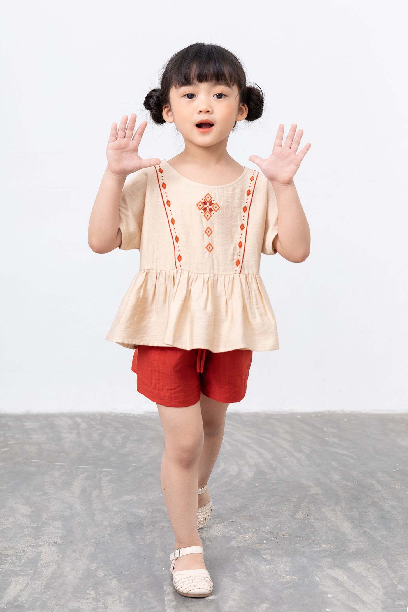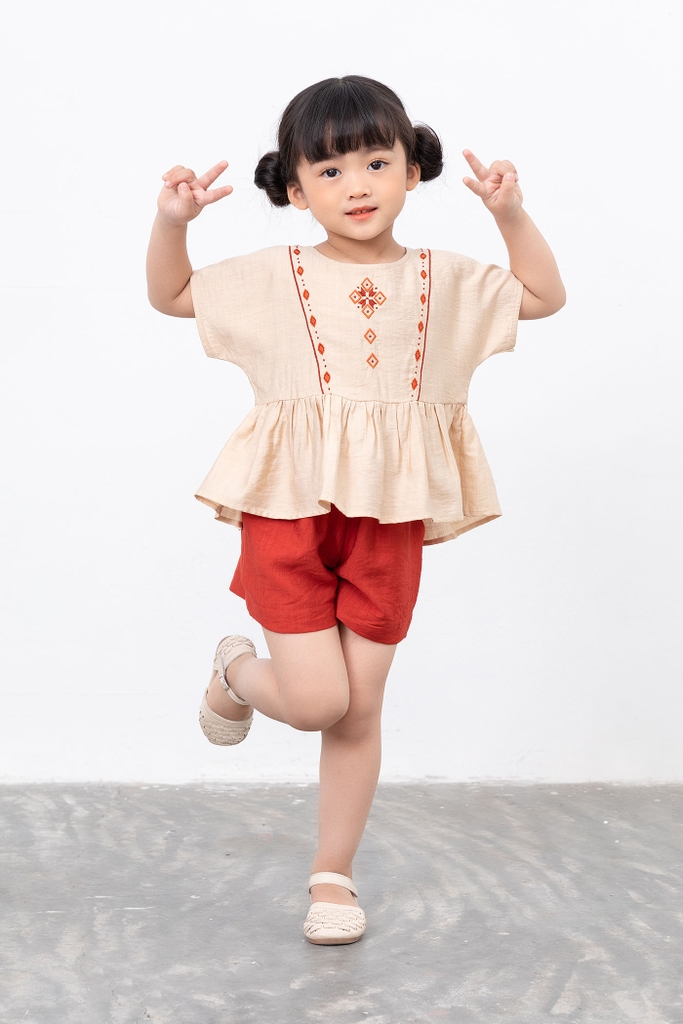 Bộ bé gái ngắn tay thêu Freedy - KBN1209