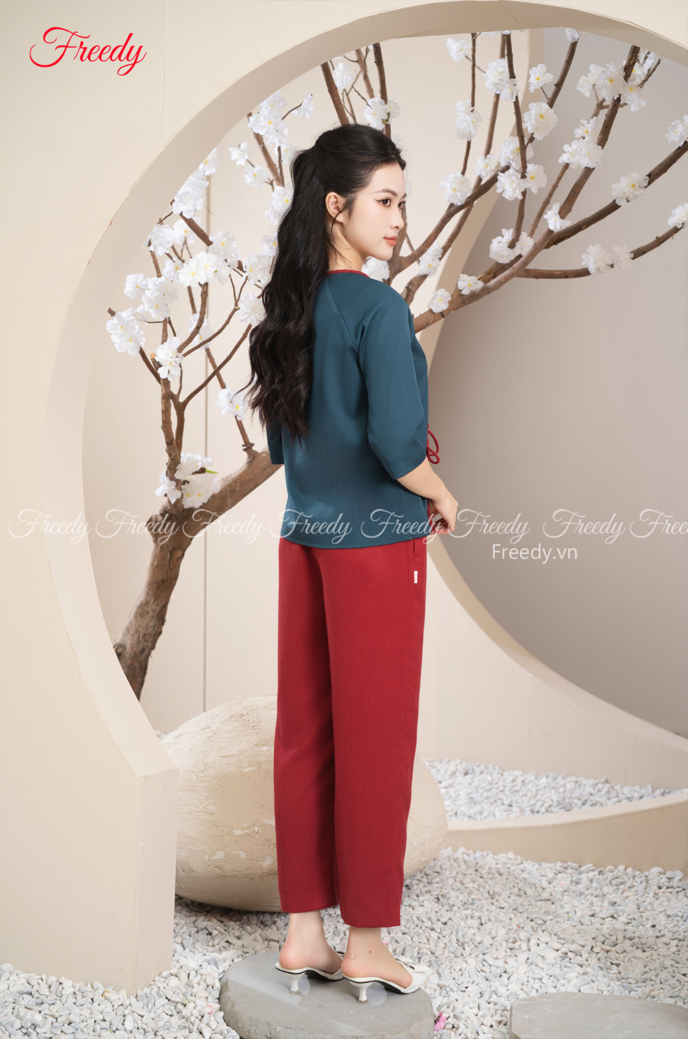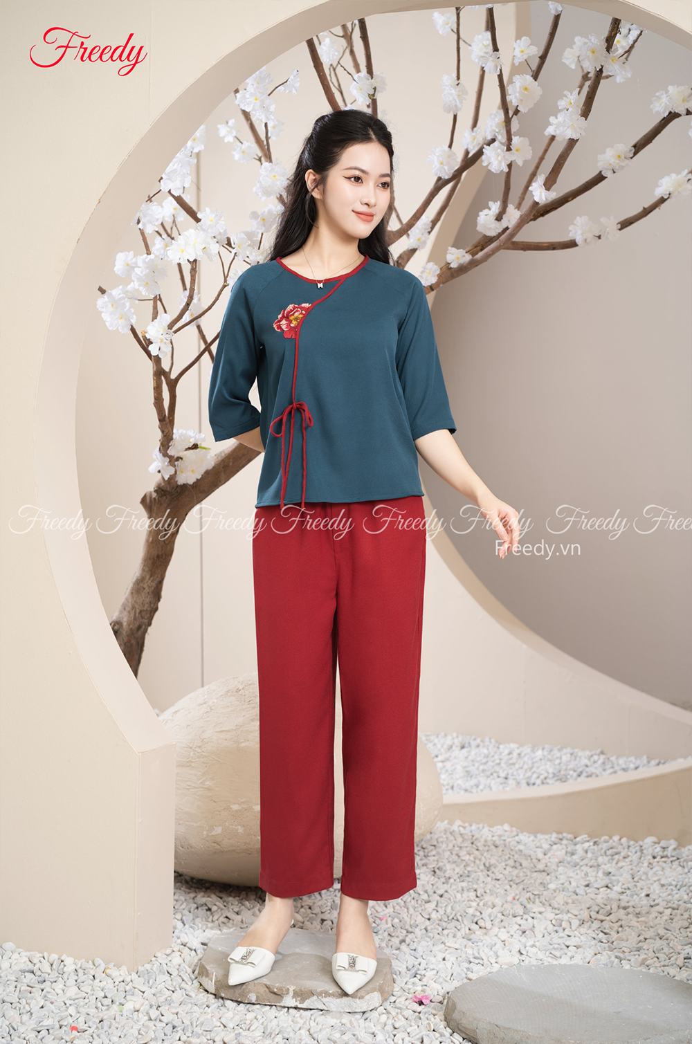 " Bộ dài tay đũi thêu hoa trà " nằm trong BST mới nhất Freedy mang đến cho các nàng một màu sắc mới