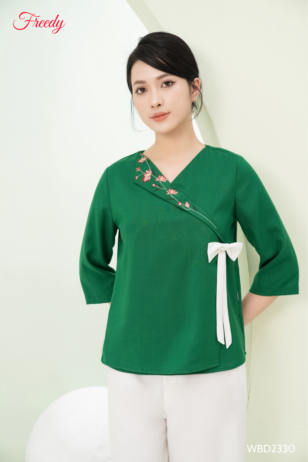 " Bộ dài tay đũi vạt chéo thắt nơ" nằm trong BST"2023 Freedy mang đến cho các nàng một màu sắc mới