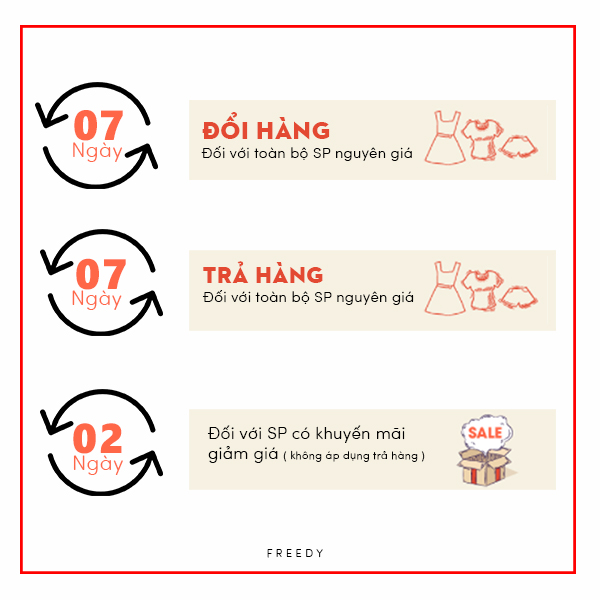 Nhằm giúp quý khách an tâm chọn lựa cho mình những set đồ mặc nhà ưng ý và phục vụ khách hàng chu đáo, Freedy thông báo đến quý khách hàng CHÍNH SÁCH ĐỔI TRẢ chi tiết sau: