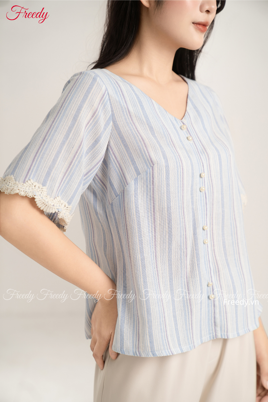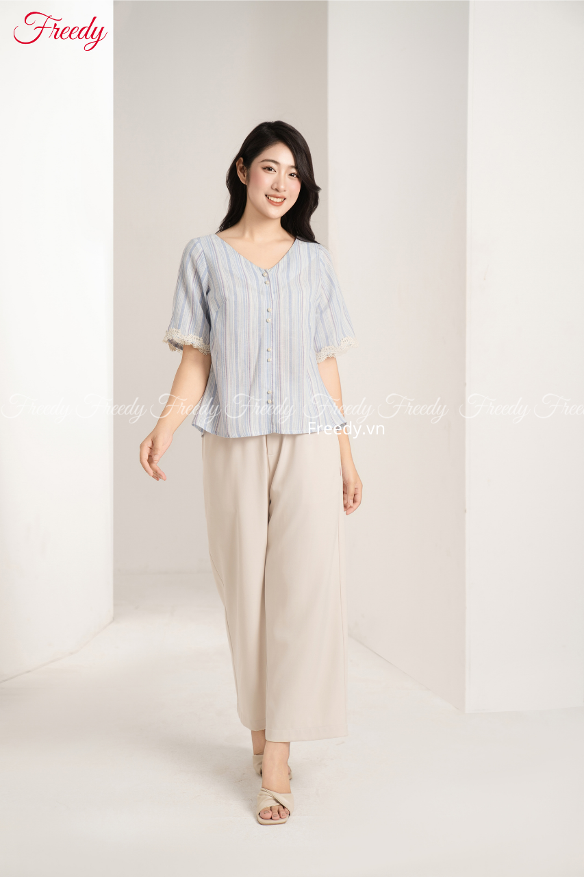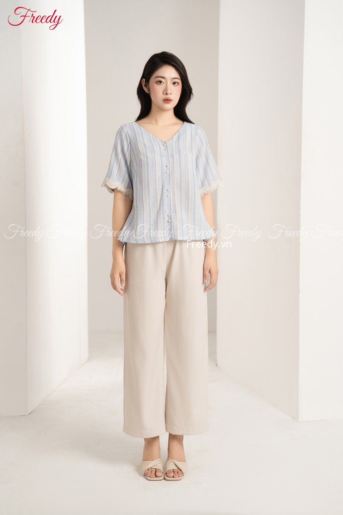 Bộ ngắn tay nữ ren cổ V - WBN2405