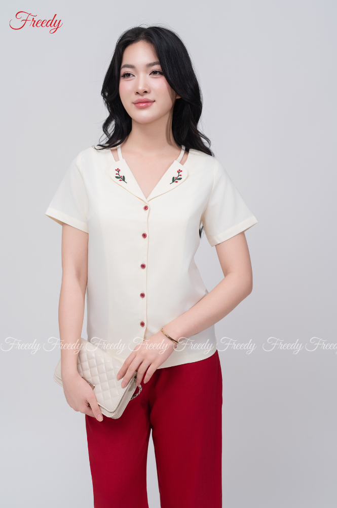 Bộ ngắn tay nữ thêu cách điệu - WBN243910