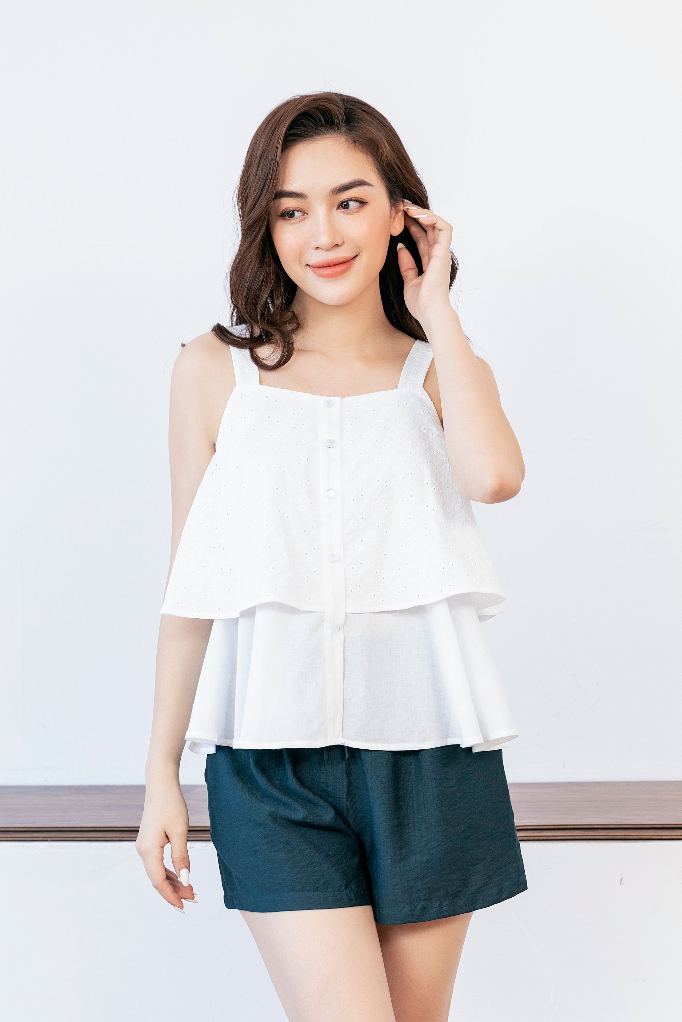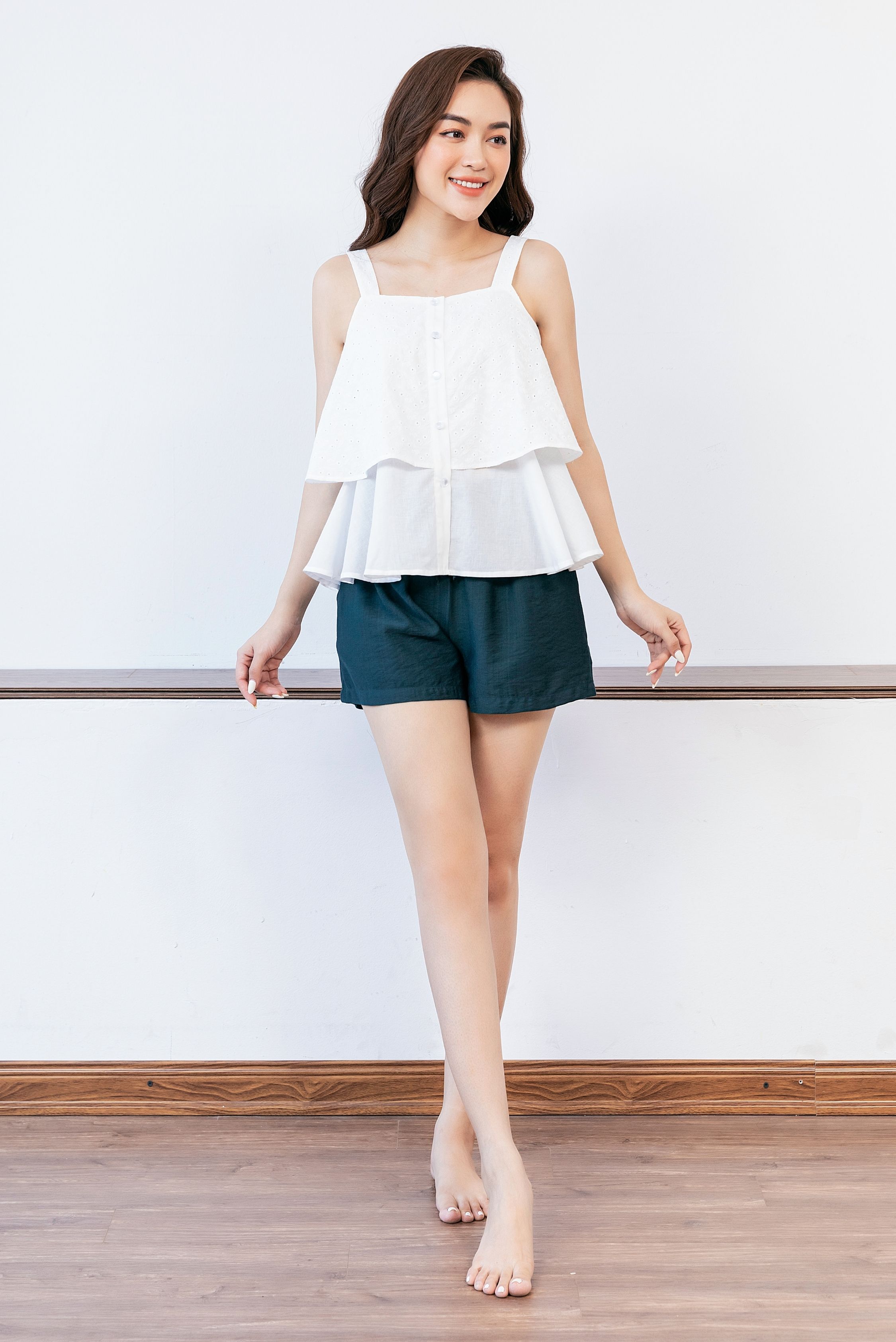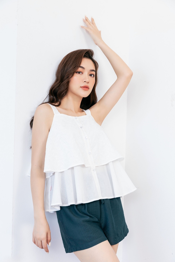 - Thiết kế: Với ý tưởng về sự thoải mái năng động Freedy đã gửi đến chị em 1 thiết kế vô cùng dễ mặc dáng 2 dây thoáng mát kết hợp màu áo trắng phối quần xanh vừa nhẹ nhàng dịu mát kết hợp dáng áo 2 layer trẻ trung dễ thương.