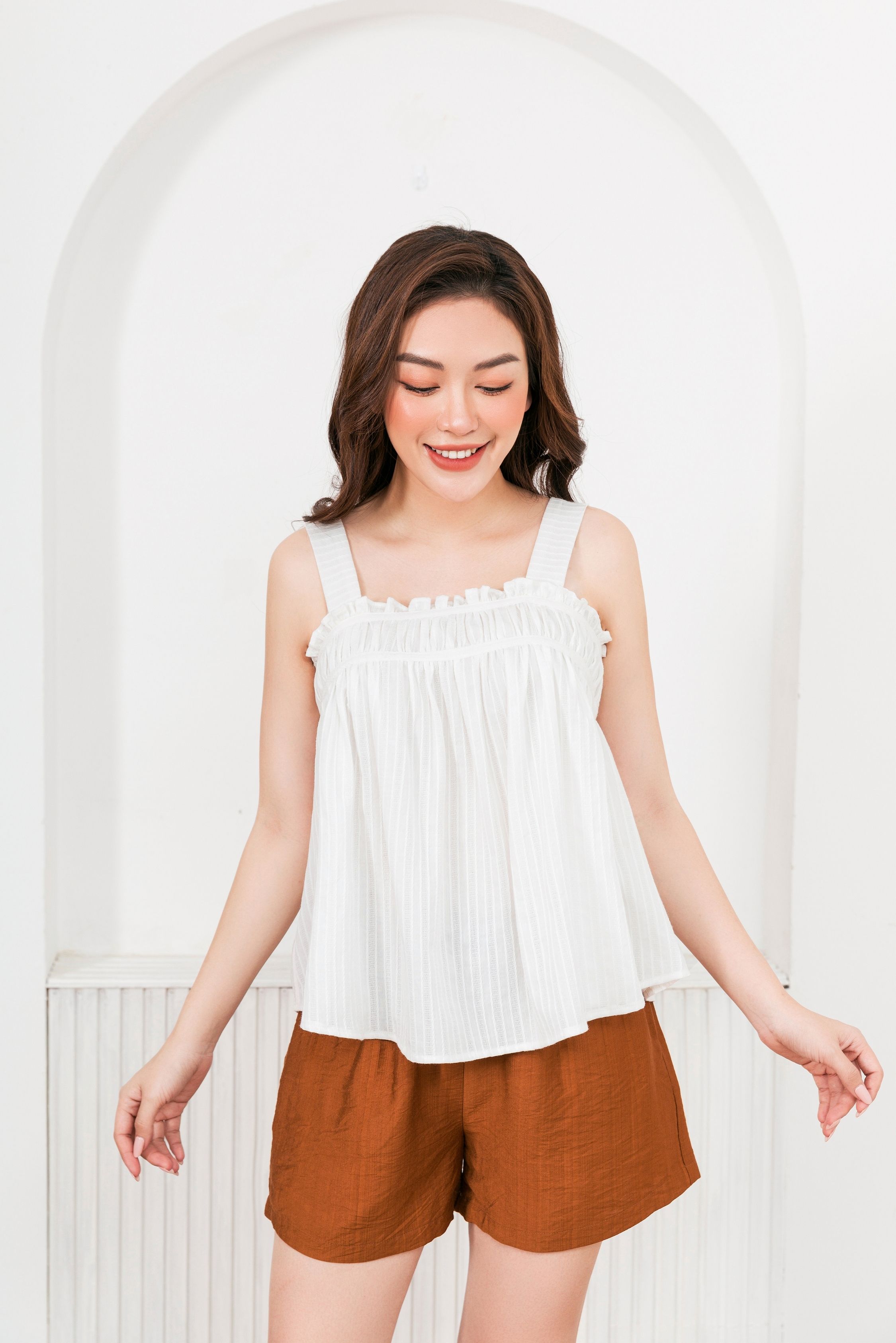 Đồ ngủ mang thiết kế nổi bật trong New Allbum là 1 set 2 dây với thiết kế "bánh bèo" xòe thân vừa nhẹ nhàng trẻ trung lại lịch sự linh hoạt mix đồ đi chơi, đi biển