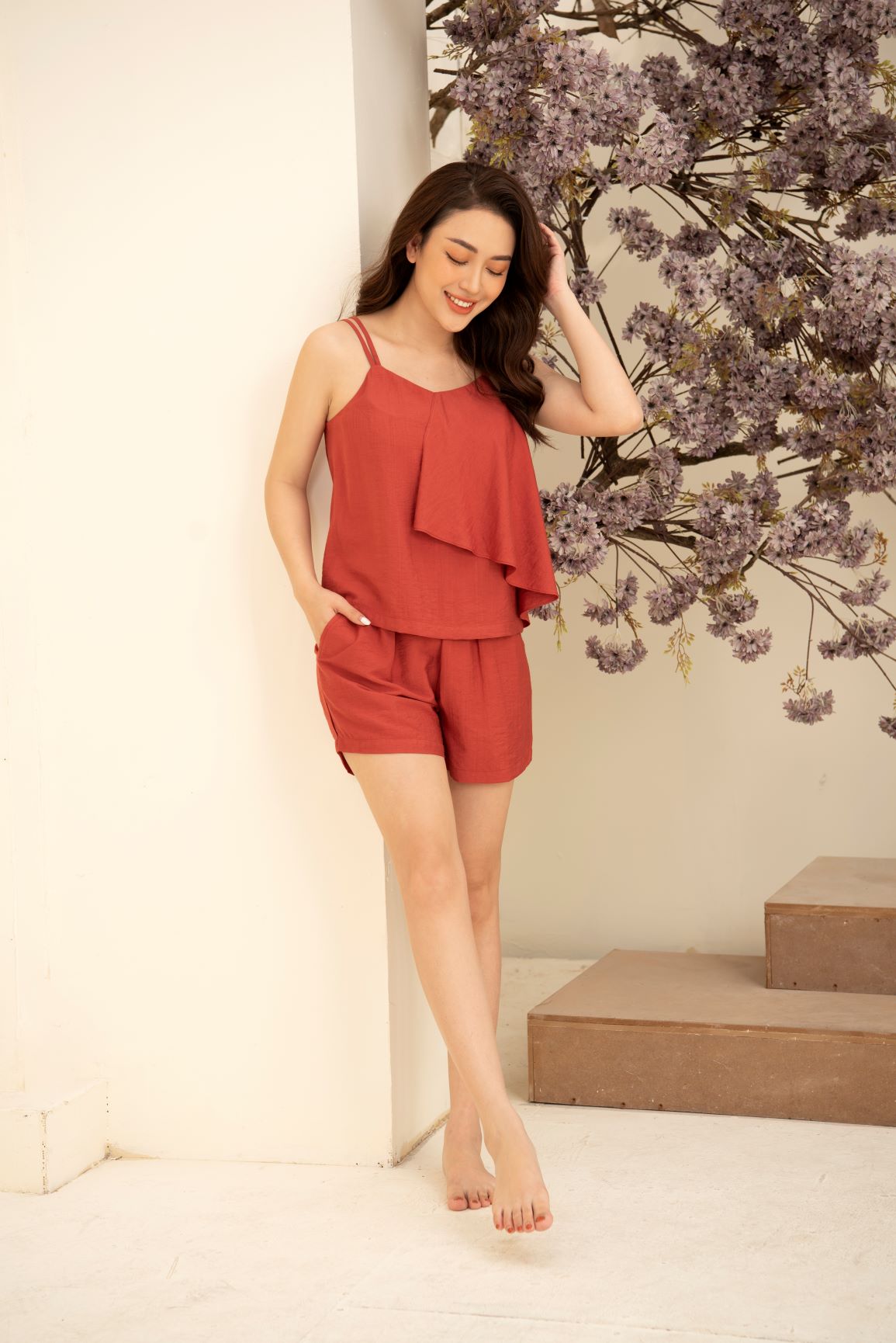 - Thiết kế: Với ý tưởng về sự thoải mái năng động Freedy đã gửi đến chị em 1 thiết kế vô cùng dễ mặc dáng 2 dây trẻ trung quyến rũ kế hợp bèo đỏ cho người mặc thon gọn và sang trọng.