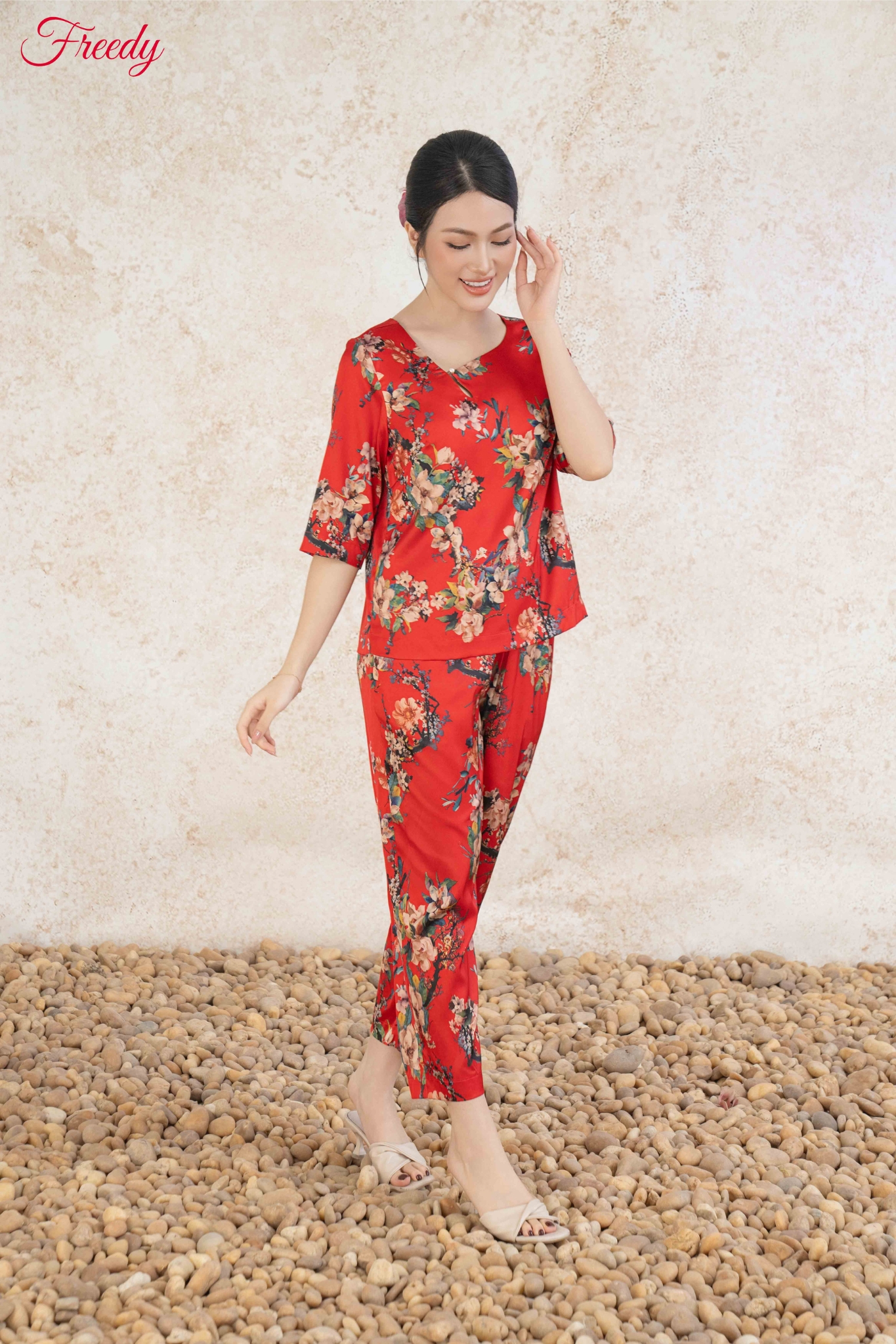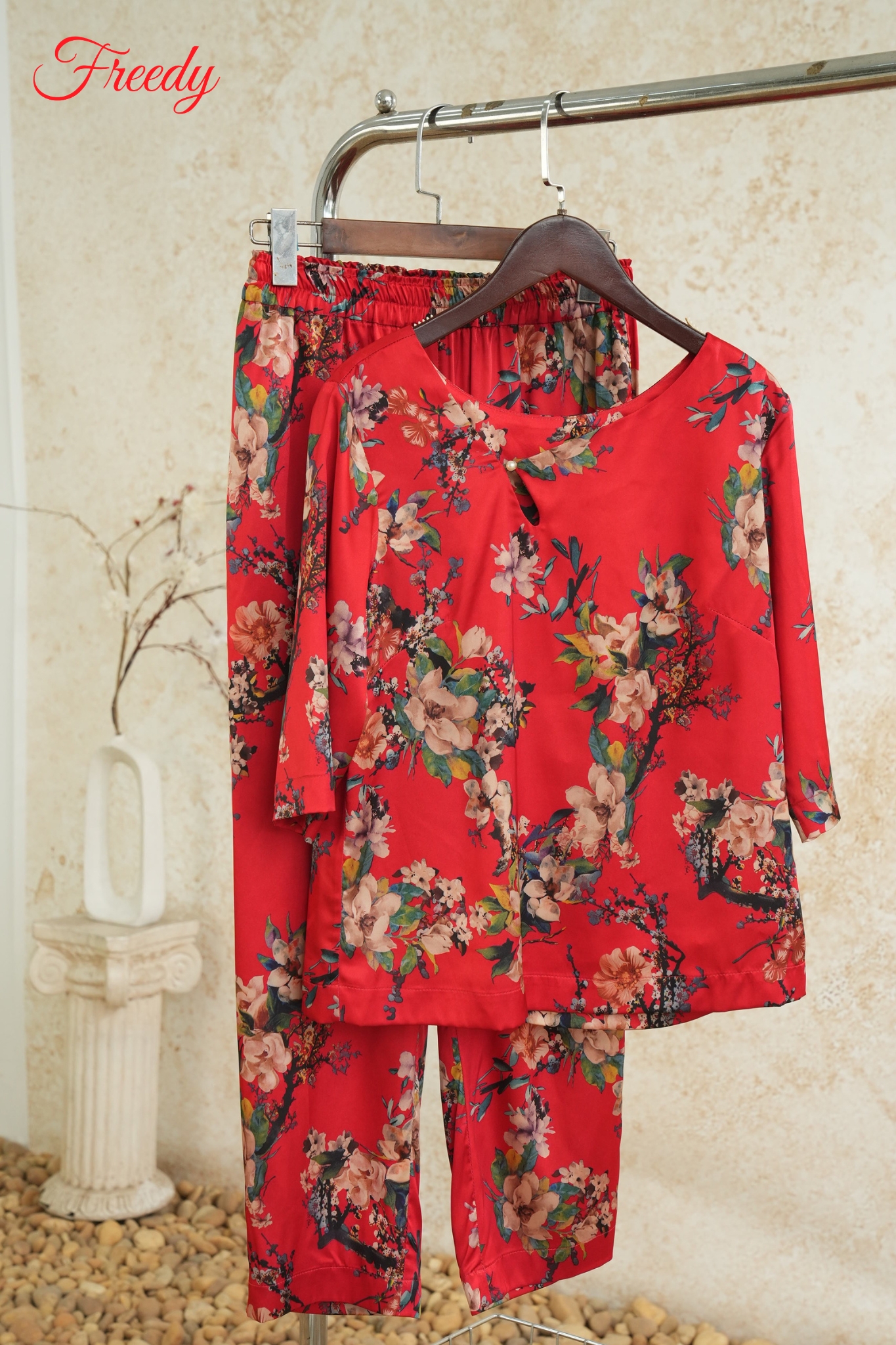 🌺 Set bộ Đỗ Quyên nổi bật với sắc đỏ rực rỡ cùng họa tiết hoa mềm mại, mang đến cảm giác quyến rũ nhưng vẫn thanh lịch, rất phù hợp cho những chị em yêu thích đồ mặc nhà cao cấp.