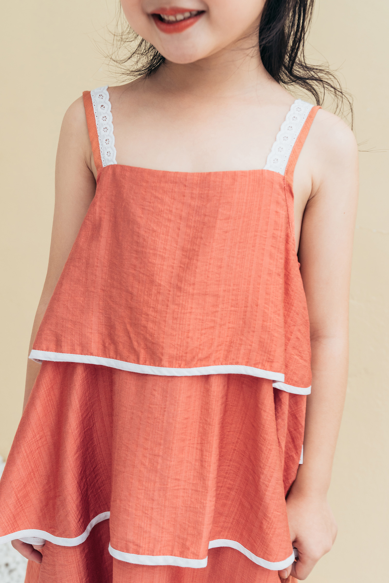 Váy bé gái 2 dây hồng đất 3 layer - KVH2201
