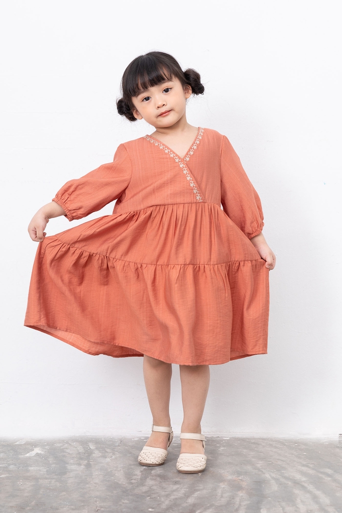 Nét truyền thống trong thiết kế hiện đại, một set váy diện tết rất yêu dành cho bé, để các mẹ có thể chọn lựa, dáng váy tay bồng trẻ trung cùng thiết kế thêu hoa độc đáo giúp cho bé luôn rạng rỡ khi đi chơi.