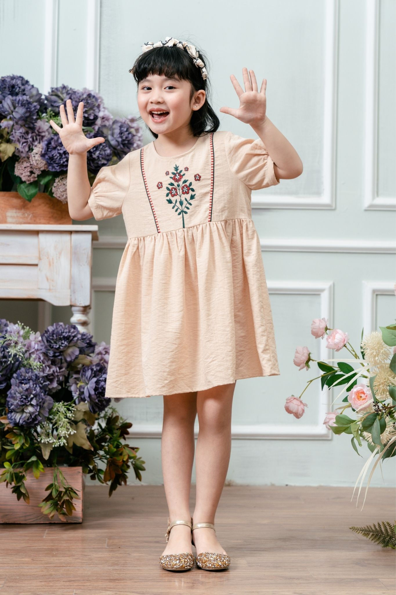 Váy bé gái ngắn tay thêu hoa - KVN2208