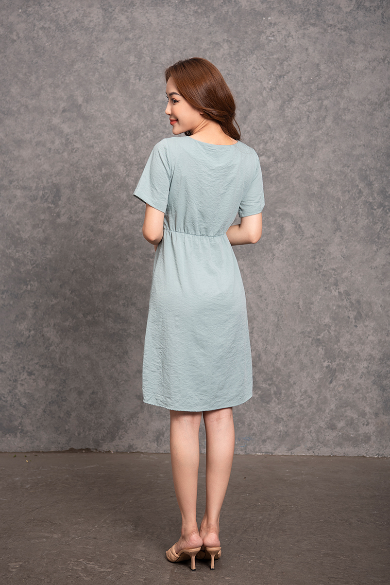 Váy ngắn tay nữ nhún eo thêu xanh ngọc - WVN2201
