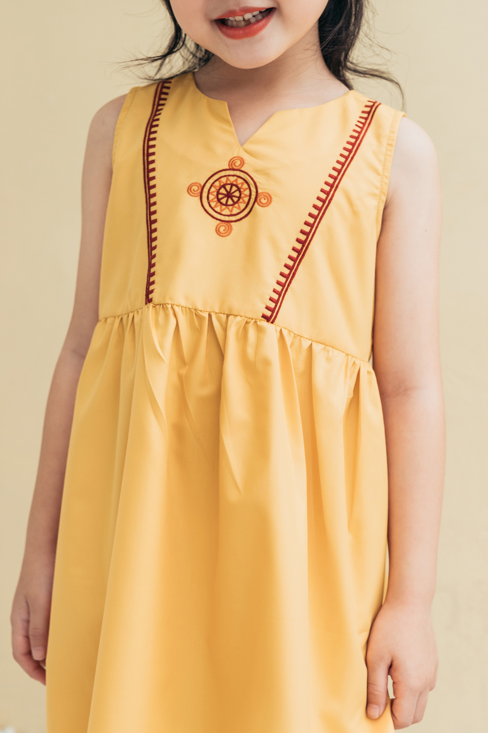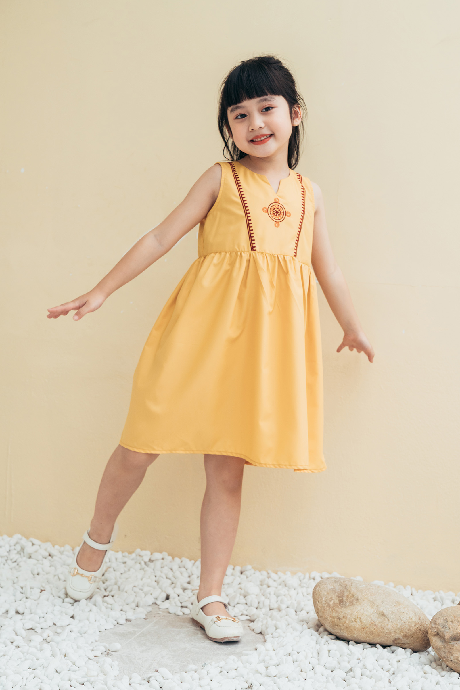 Váy sát nách thêu cho bé đi chơi và đến trường, chất liệu cotton tự nhiên mát mẻ sẽ đồng hành cùng con cả ngày dài